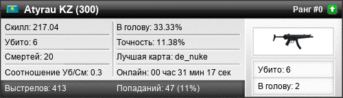 | de_nuke | 3 | 0.27 | 0.23 | 2 | 12 | 00:12:48 | 05.12.2020 | |