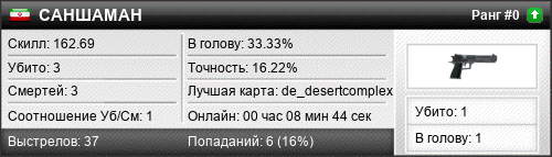 | de_desertcomplex | 3 | 1.00 | 0.34 | 1 | 6 | 00:08:44 | 06.12.2020 | |