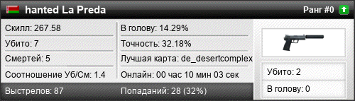 | de_desertcomplex | 7 | 1.40 | 0.70 | 1 | 6 | 00:10:03 | 16.12.2020 | |