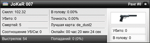 | 25.12.2020 @ 18:06 - 18:17 | de_dust4never | 00:10:36 | 0 | 0 | 0 | 0.00% | 0.00% | 102.39 |