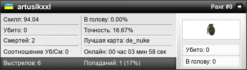 | de_nuke | 0 | 0.00 | 0.00 | 1 | 3 | 00:03:03 | 05.03.2021 | |