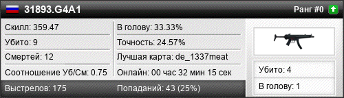 | de_1337meat | 8 | 1.14 | 0.39 | 1 | 15 | 00:20:37 | 14.04.2021 | |
