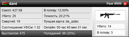 | 19.11.2021 @ 14:40 - 14:41 | de_core | 00:00:39 | 0 | 1 | 0 | 0.00% | 0.00% | 104.03 |