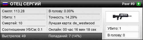 | de_westwood | 1 | 0.11 | 0.07 | 1 | 11 | 00:15:06 | 20.09.2022 | |