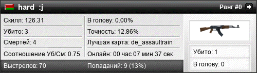 | de_assaultrain | 2 | 1.00 | 0.45 | 0 | 3 | 00:04:29 | 01.01.1970 | |