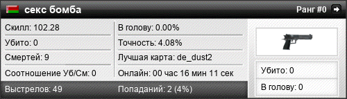 | de_inferno | 0 | 0.00 | 0.00 | 1 | 9 | 00:10:31 | 24.04.2021 | |