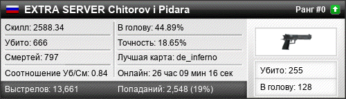 de_inferno | 55 | 1.04 | 0.49 | 14 | 81 | 01:52:29 | 16.09.2022 |
