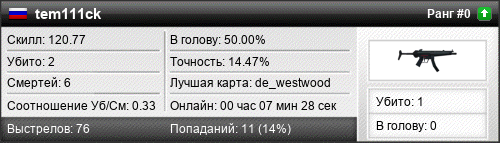 | de_westwood | 2 | 0.33 | 0.27 | 1 | 6 | 00:07:28 | 26.05.2021 | |