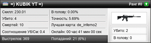 | de_inferno2 | 3 | 0.33 | 0.17 | 1 | 9 | 00:18:07 | 13.06.2021 | |