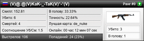 | de_inferno | 0 | 0.00 | 0.00 | 1 | 4 | 00:05:09 | 10.07.2021 | |