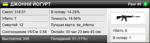| de_inferno | 5 | 0.56 | 0.34 | 2 | 11 | 00:14:33 | 30.07.2021 | |