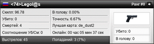 | de_dust2 | 0 | 0.00 | 0.00 | 1 | 2 | 00:03:01 | 07.08.2021 | |