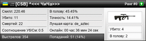 | de_aztec | 9 | 1.00 | 0.51 | 1 | 17 | 00:17:45 | 11.08.2021 | |