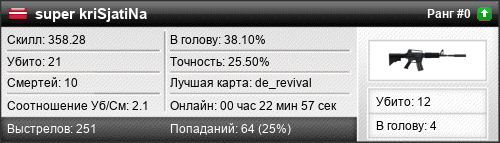 | de_revival | 12 | 1.50 | 0.74 | 1 | 11 | 00:16:07 | 14.08.2021 | |
