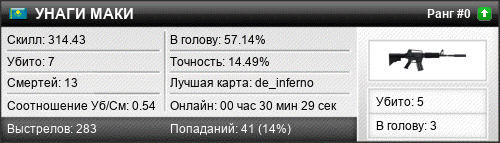 | de_inferno | 7 | 0.58 | 0.24 | 1 | 17 | 00:28:56 | 19.08.2021 | |