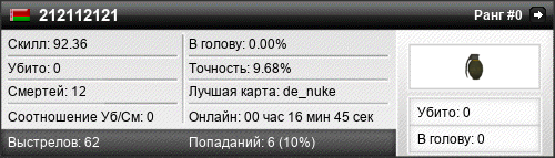 | de_nuke | 0 | 0.00 | 0.00 | 1 | 2 | 00:01:30 | 09.10.2021 | |