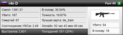 | de_mirage | 9 | 1.80 | 0.72 | 1 | 7 | 00:12:25 | 10.10.2021 | |