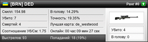 | de_westwood | 7 | 1.75 | 0.74 | 1 | 9 | 00:09:27 | 04.01.2022 | |