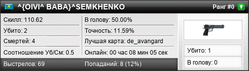 | de_avangard | 2 | 0.67 | 0.32 | 1 | 4 | 00:06:15 | 09.01.2016 | |