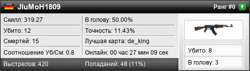 | de_king | 11 | 0.85 | 0.46 | 1 | 18 | 00:23:48 | 01.02.2022 | |