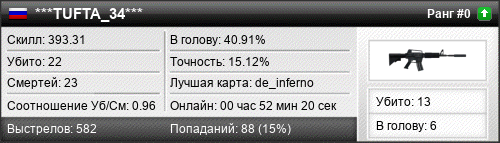 | de_dust | 3 | 0.50 | 0.26 | 1 | 13 | 00:11:23 | 16.04.2022 | |