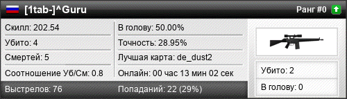 12.03.2022 @ 09:03 - 09:04 de_westwood 00:01:27 1 0 1 100.00% 30.00% 165.84 Без изменений