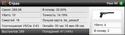 | de_assault | 6 | 3.00 | 0.49 | 1 | 11 | 00:12:14 | 19.03.2022 | |