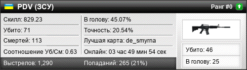 | de_smyrna | 20 | 2.50 | 0.95 | 1 | 15 | 00:21:06 | 13.06.2022 | |