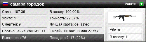 | de_assault | 0 | 0.00 | 0.00 | 1 | 7 | 00:05:17 | 19.06.2022 | |