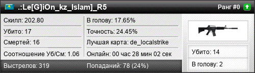 | de_localstrike | 8 | 1.00 | 0.58 | 1 | 10 | 00:13:54 | 11.01.2016 | |