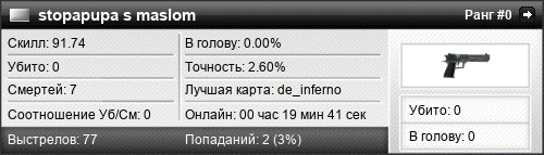 | de_inferno | 0 | 0.00 | 0.00 | 1 | 8 | 00:12:04 | 23.08.2022 | |