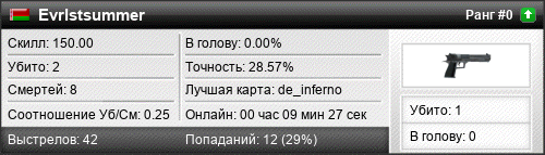| de_inferno | 2 | 0.50 | 0.35 | 1 | 6 | 00:05:45 | 27.08.2022 | |
