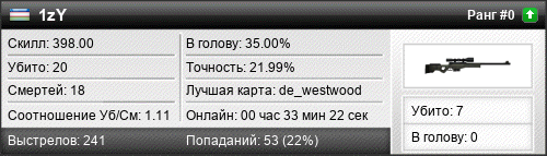 | de_westwood | 10 | 0.83 | 0.49 | 1 | 18 | 00:20:27 | 23.09.2022 | |