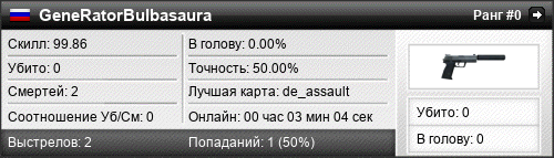 | de_assault | 0 | 0.00 | 0.00 | 1 | 2 | 00:01:43 | 08.09.2022 | |