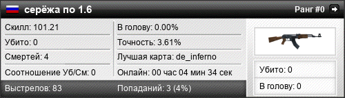| de_inferno | 0 | 0.00 | 0.00 | 1 | 2 | 00:01:38 | 23.09.2022 | |