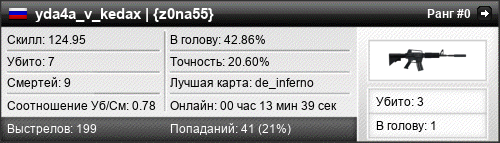 | de_inferno | 7 | 0.78 | 0.51 | 3 | 9 | 00:13:39 | 25.10.2015 | |