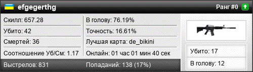 de_dust2 | 7 | 1.17 | 0.66 | 1 | 9 | 00:10:40 | 12.11.2022 |