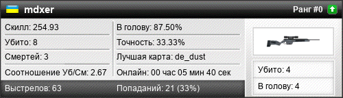 | de_dust | 8 | 2.67 | 1.77 | 1 | 5 | 00:04:31 | 31.01.2023 | |