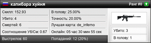 03.04.2023 @ 12:49 - 12:54 de_dust 00:04:24 0 4 0 0.00% 21.43% 152.93 Разница: -2.12