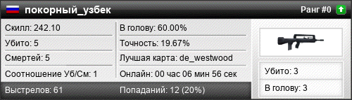 | de_westwood | 5 | 1.67 | 0.93 | 1 | 4 | 00:05:23 | 27.05.2023 | |