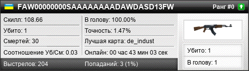 | de_inferno | 0 | 0.00 | 0.00 | 1 | 13 | 00:17:45 | 17.09.2023 | |