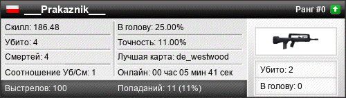 | de_westwood | 4 | 1.00 | 0.70 | 1 | 5 | 00:05:41 | 23.09.2023 | |