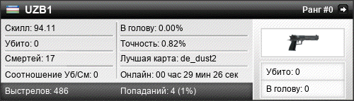 | 20.10.2023 @ 10:50 - 10:51 | de_dust | 00:00:06 | 0 | 0 | 0 | 0.00% | 0.00% | 100.00 |