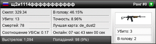 | de_inferno | 3 | 0.21 | 0.08 | 3 | 32 | 00:38:04 | 02.01.2024 | |