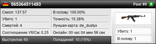 | de_dustyx | 1 | 0.25 | 0.25 | 1 | 4 | 00:04:04 | 26.01.2024 | |