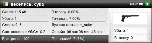 | de_dust2 | 0 | 0.00 | 0.00 | 0 | 137 | 04:29:01 | 01.01.1970 | |