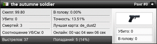 | de_inferno | 0 | 0.00 | 0.00 | 1 | 3 | 00:02:27 | 20.02.2024 | |