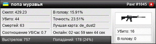| de_dust2 | 17 | 0.71 | 0.72 | 1 | 37 | 00:23:40 | 15.12.2025 | |