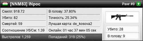 | de_inferno | 12 | 1.20 | 0.85 | 1 | 16 | 00:14:10 | 09.04.2024 | |