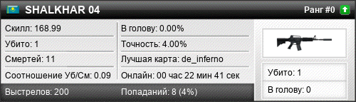 | de_inferno | 1 | 0.10 | 0.05 | 1 | 17 | 00:19:54 | 04.05.2024 | |